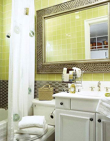 窗戶帶來的新鮮空氣一改衛(wèi)浴間沉悶潮濕的環(huán)境,耀眼的光線帶給你一整天的新鮮??蚩蛳噙B、框框相扣的綠色圖案背景讓衛(wèi)浴間更加歡快。