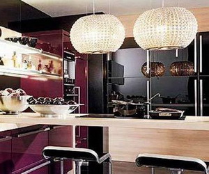 紫色,高貴神秘的顏色,略帶種憂郁的色彩。紫色蔬果中含有花青素,具有強力的抗血管硬化的神奇作用,從而可阻止心臟病發(fā)作和血凝塊形成引起的腦中風(fēng)。葡萄紫色的廚房色彩搭配華麗的水晶燈,營造出了高貴優(yōu)雅的情調(diào)。
